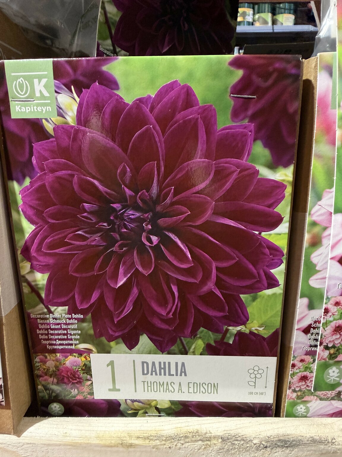 Plant overview: Dahlia ‘Thomas A. Edison’ is a classic decorative dahlia, producing large, velvety blooms in rich deep purple. Strong, upright growth and bold colouring make it a favourite for borders, feature planting, and cut flower gardens. It is a tender perennial grown from tubers.