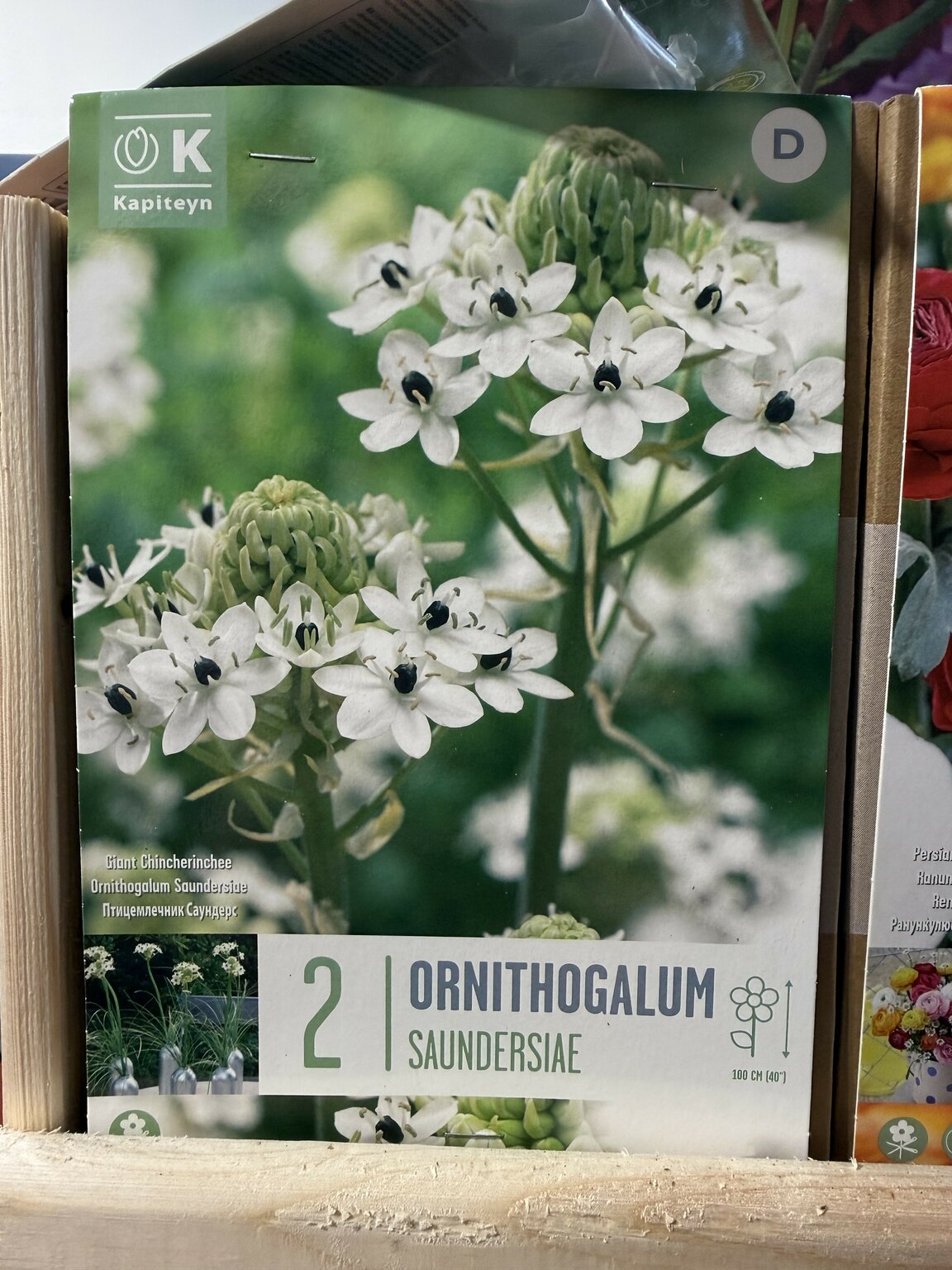 Plant overview: Ornithogalum saundersiae, commonly known as the Giant Chincherinchee, is a bold, architectural bulb producing tall flower spikes topped with star-shaped white flowers with dark centres. It is ideal for borders, mixed beds, and large containers, adding strong vertical interest.