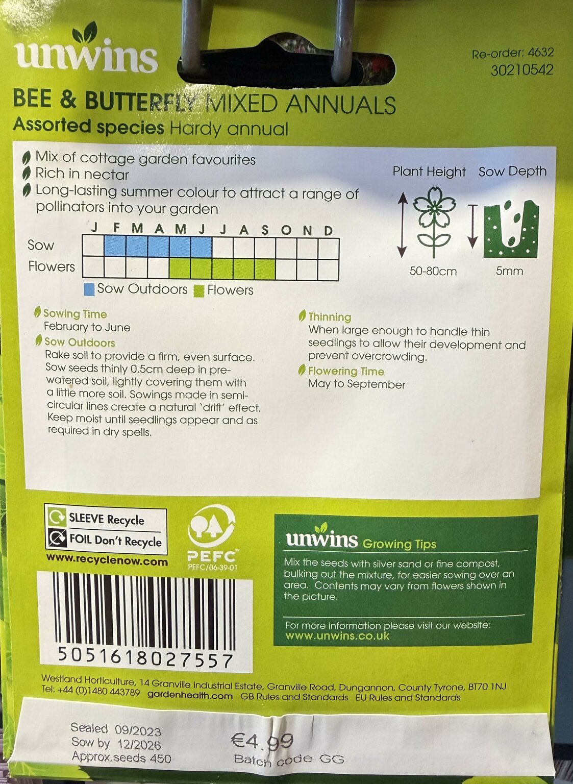 Are you looking for %name"? We offer this product in our garden centre in Ballycannon, Croagh, near Kilmallock, Charleville, Limerick, Adare and Ballingarry. You can order Bee & Butterfly Mix online or you can visit our garden centre in Ballycannon, Croagh, Limerick for more information about the product "Bee & Butterfly Mix". We look forward to seeing you soon!