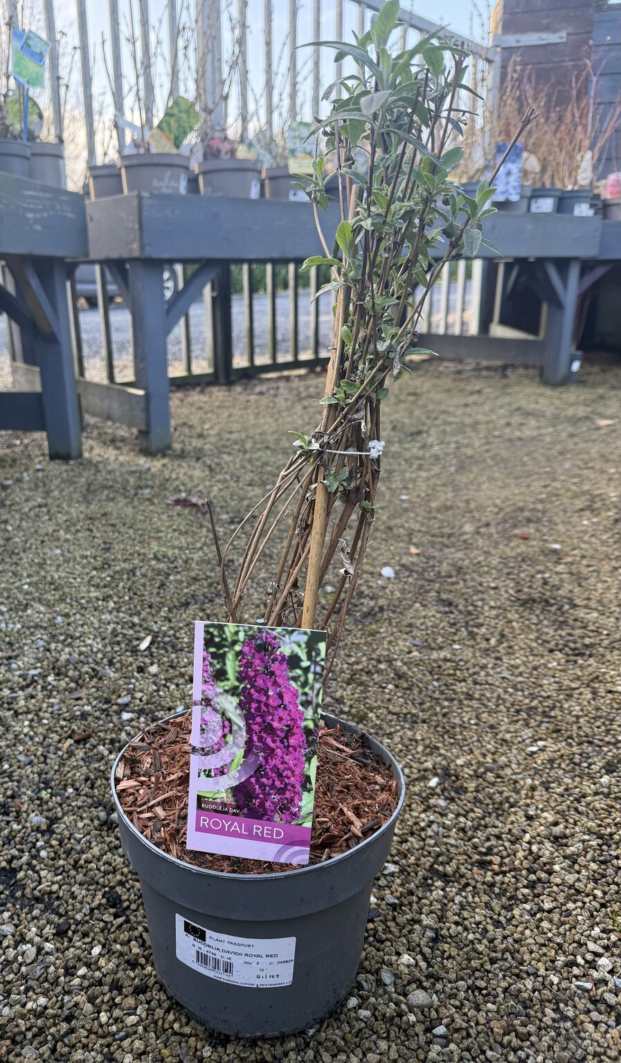 Are you looking for %name"? We offer this product in our garden centre in Ballycannon, Croagh, near Kilmallock, Charleville, Limerick, Adare and Ballingarry. You can order BUDDELIA DAVIDII ROYAL RED online or you can visit our garden centre in Ballycannon, Croagh, Limerick for more information about the product "BUDDELIA DAVIDII ROYAL RED". We look forward to seeing you soon!