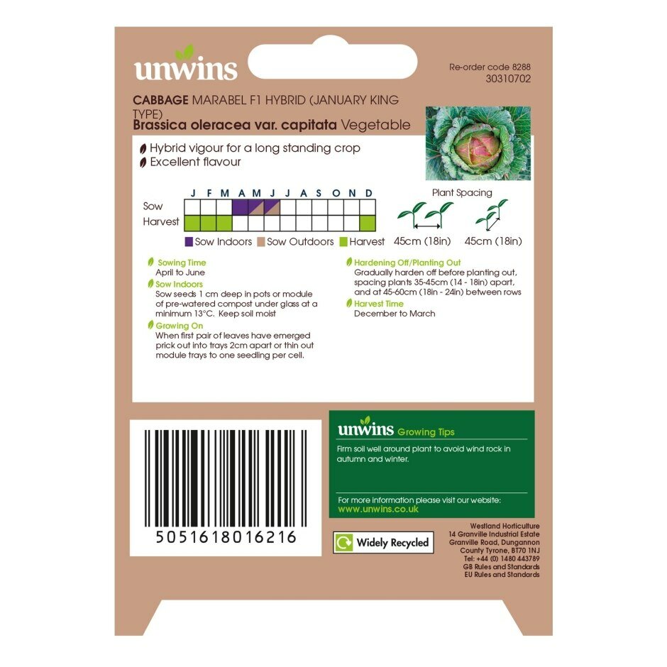 Are you looking for %name"? We offer this product in our garden centre in Ballycannon, Croagh, near Kilmallock, Charleville, Limerick, Adare and Ballingarry. You can order Cabbage (Round) Marabel F1 online or you can visit our garden centre in Ballycannon, Croagh, Limerick for more information about the product "Cabbage (Round) Marabel F1". We look forward to seeing you soon!