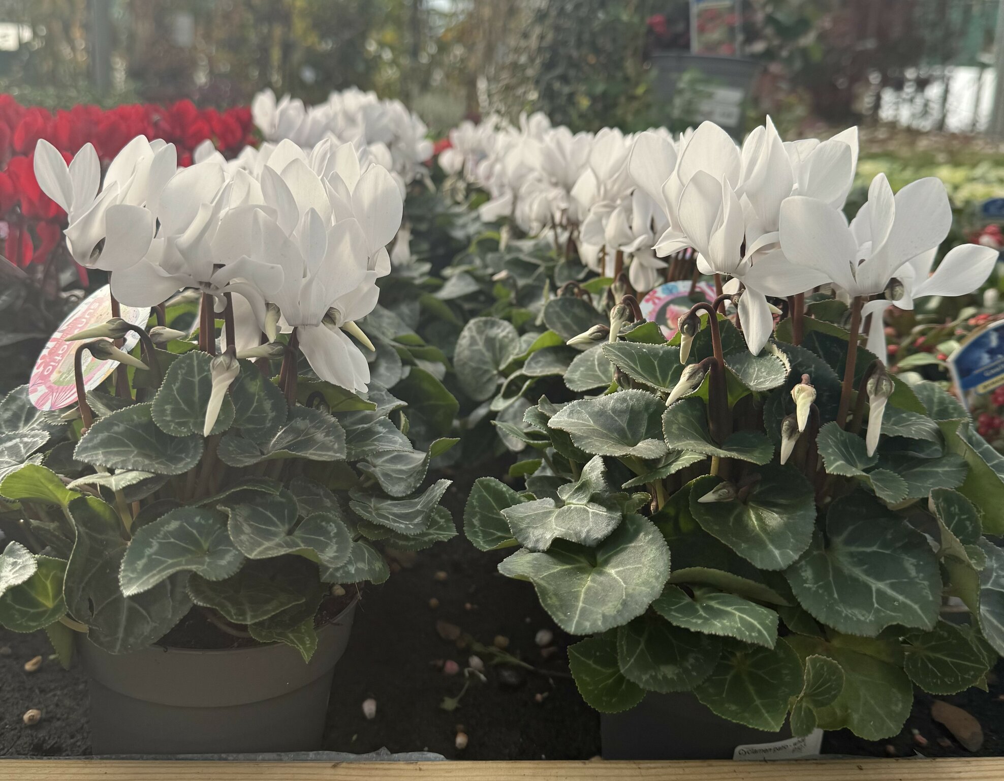 Are you looking for %name"? We offer this product in our garden centre in Ballycannon, Croagh, near Kilmallock, Charleville, Limerick, Adare and Ballingarry. You can order Cyclamen patio - white online or you can visit our garden centre in Ballycannon, Croagh, Limerick for more information about the product "Cyclamen patio - white". We look forward to seeing you soon!