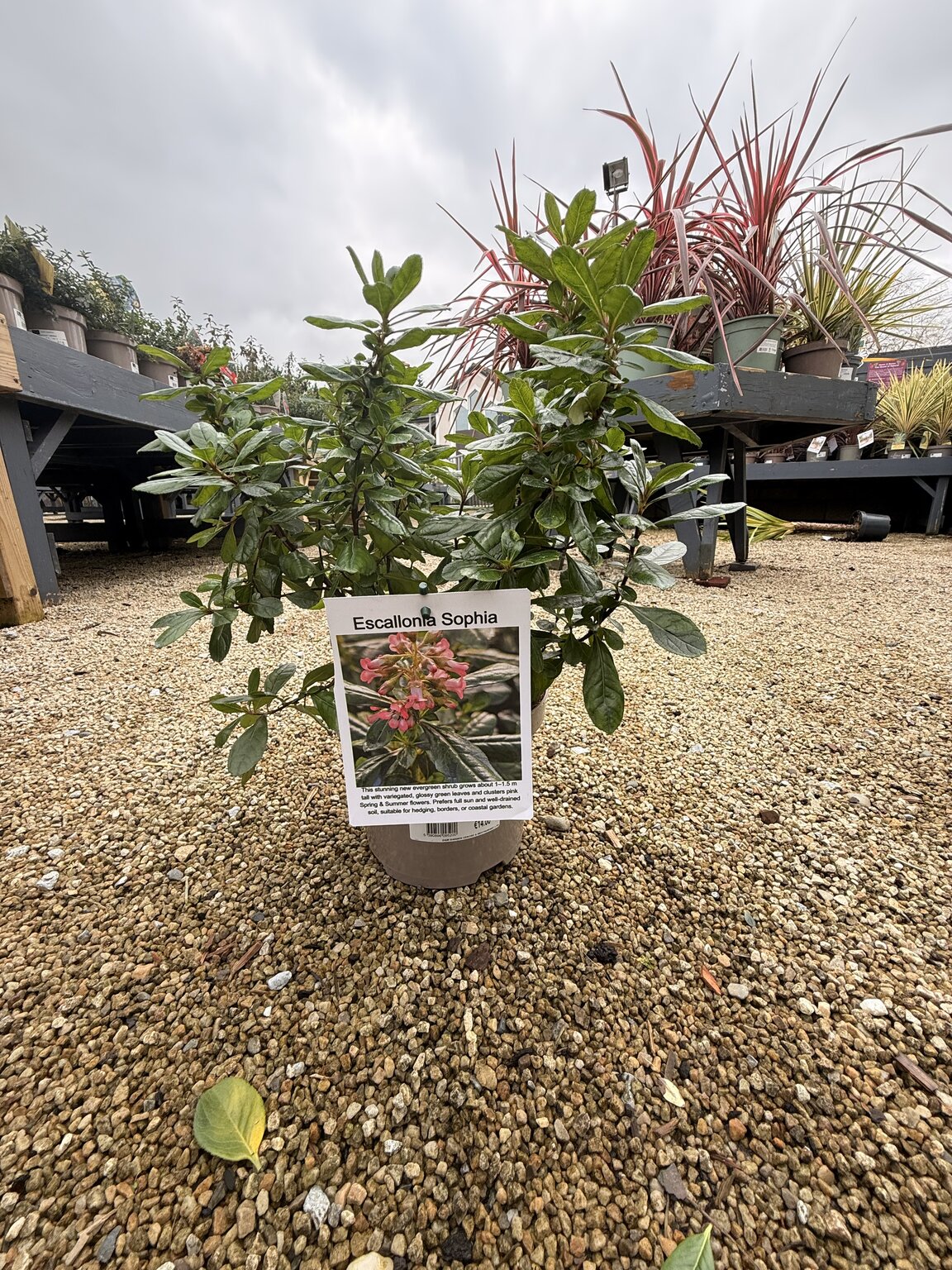 Are you looking for %name"? We offer this product in our garden centre in Ballycannon, Croagh, near Kilmallock, Charleville, Limerick, Adare and Ballingarry. You can order ESCALLONIA SOPHIA online or you can visit our garden centre in Ballycannon, Croagh, Limerick for more information about the product "ESCALLONIA SOPHIA". We look forward to seeing you soon!