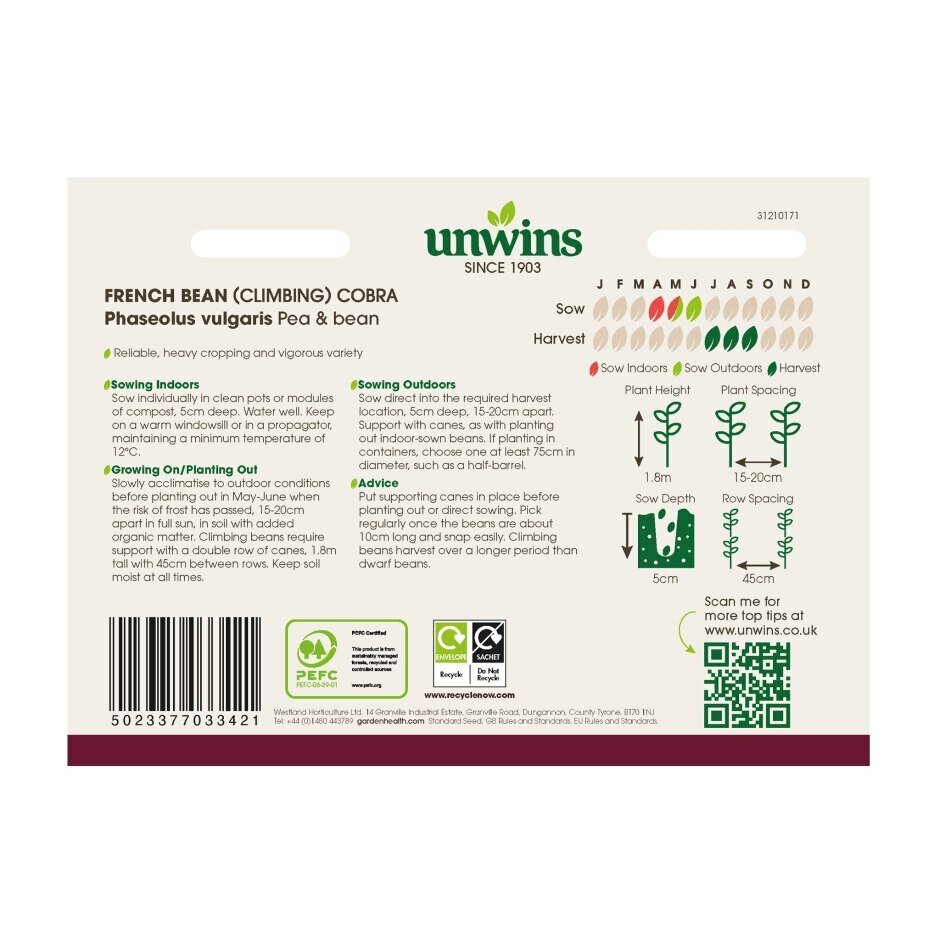 Are you looking for %name"? We offer this product in our garden centre in Ballycannon, Croagh, near Kilmallock, Charleville, Limerick, Adare and Ballingarry. You can order French Bean (Climbing) Cobra online or you can visit our garden centre in Ballycannon, Croagh, Limerick for more information about the product "French Bean (Climbing) Cobra". We look forward to seeing you soon!