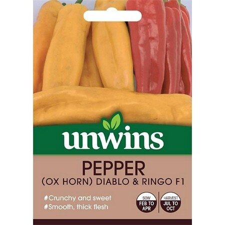 Are you looking for %name"? We offer this product in our garden centre in Ballycannon, Croagh, near Kilmallock, Charleville, Limerick, Adare and Ballingarry. You can order Pepper (Ox Horn) Diablo & Ringo F1 online or you can visit our garden centre in Ballycannon, Croagh, Limerick for more information about the product "Pepper (Ox Horn) Diablo & Ringo F1". We look forward to seeing you soon!