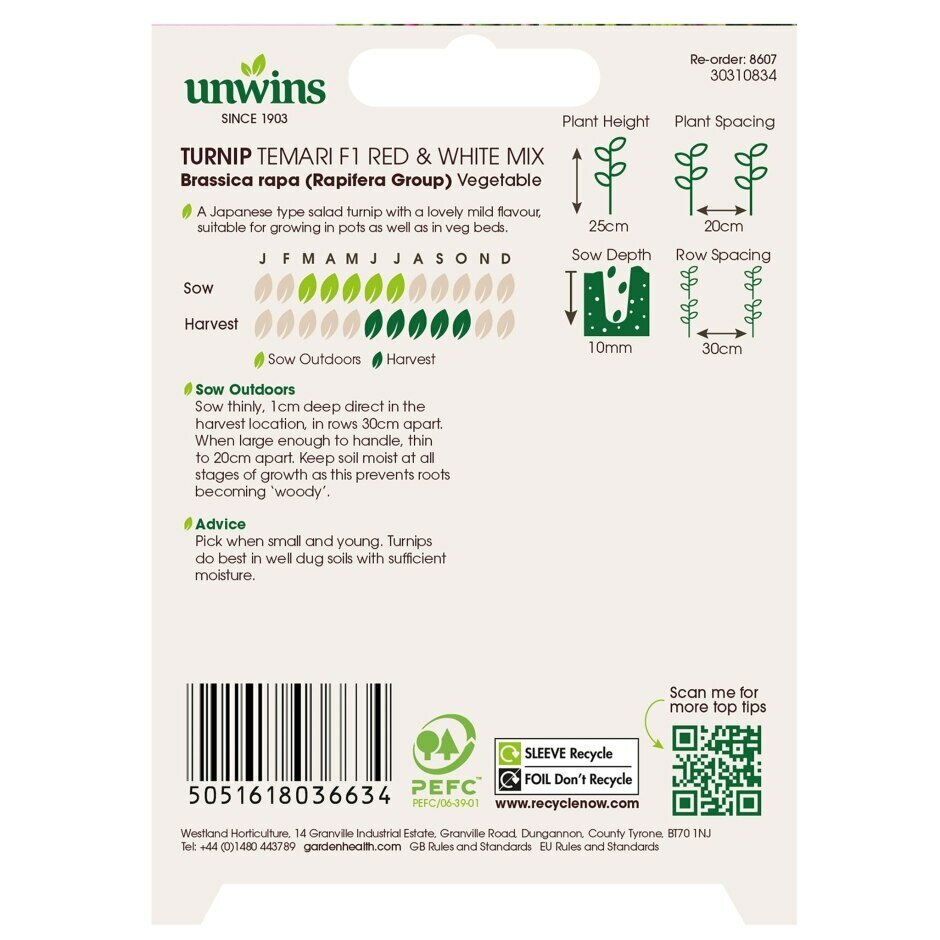 Are you looking for %name"? We offer this product in our garden centre in Ballycannon, Croagh, near Kilmallock, Charleville, Limerick, Adare and Ballingarry. You can order Turnip Temari Red & White Mix online or you can visit our garden centre in Ballycannon, Croagh, Limerick for more information about the product "Turnip Temari Red & White Mix". We look forward to seeing you soon!